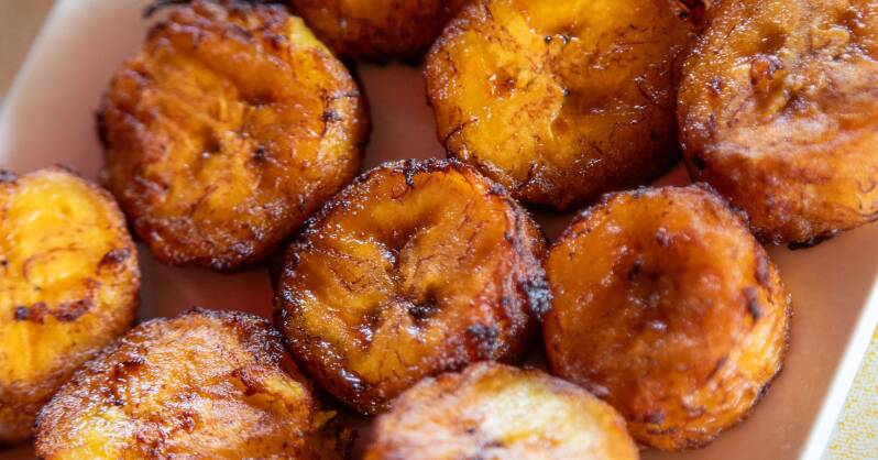 Gebakken banaan: een klassieker die bij bijna alles past. Het wordt gemaakt van bakbanaan, een stevigere en zetmeelrijkere variant van de gewone banaan. Bakbanaan eet je niet rauw; pas wanneer hij wordt gebakken, krijgt hij die herkenbare zachte structuur en natuurlijke zoetheid. Het is een bijgerecht dat elk bord meteen een tropische touch geeft.
